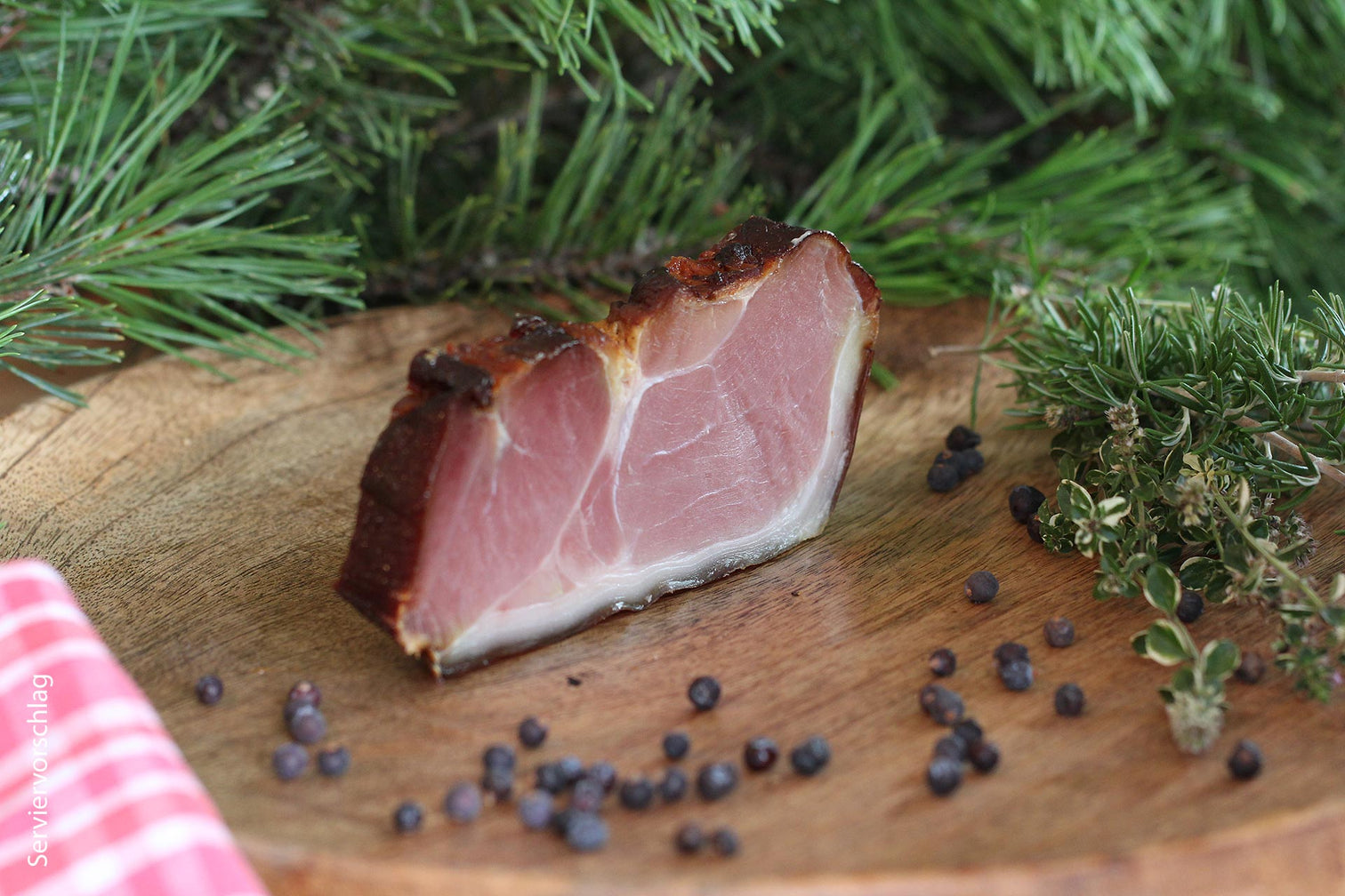 Drei Monate dauert es, bis der Schinken als „Tannwäldle- Spezialität“ in den Verkauf gebracht wird. Das original Tannwäldle-Aroma ist unverwechselbar und sie erkennen es sozusagen „mit geschlossenen Augen“.